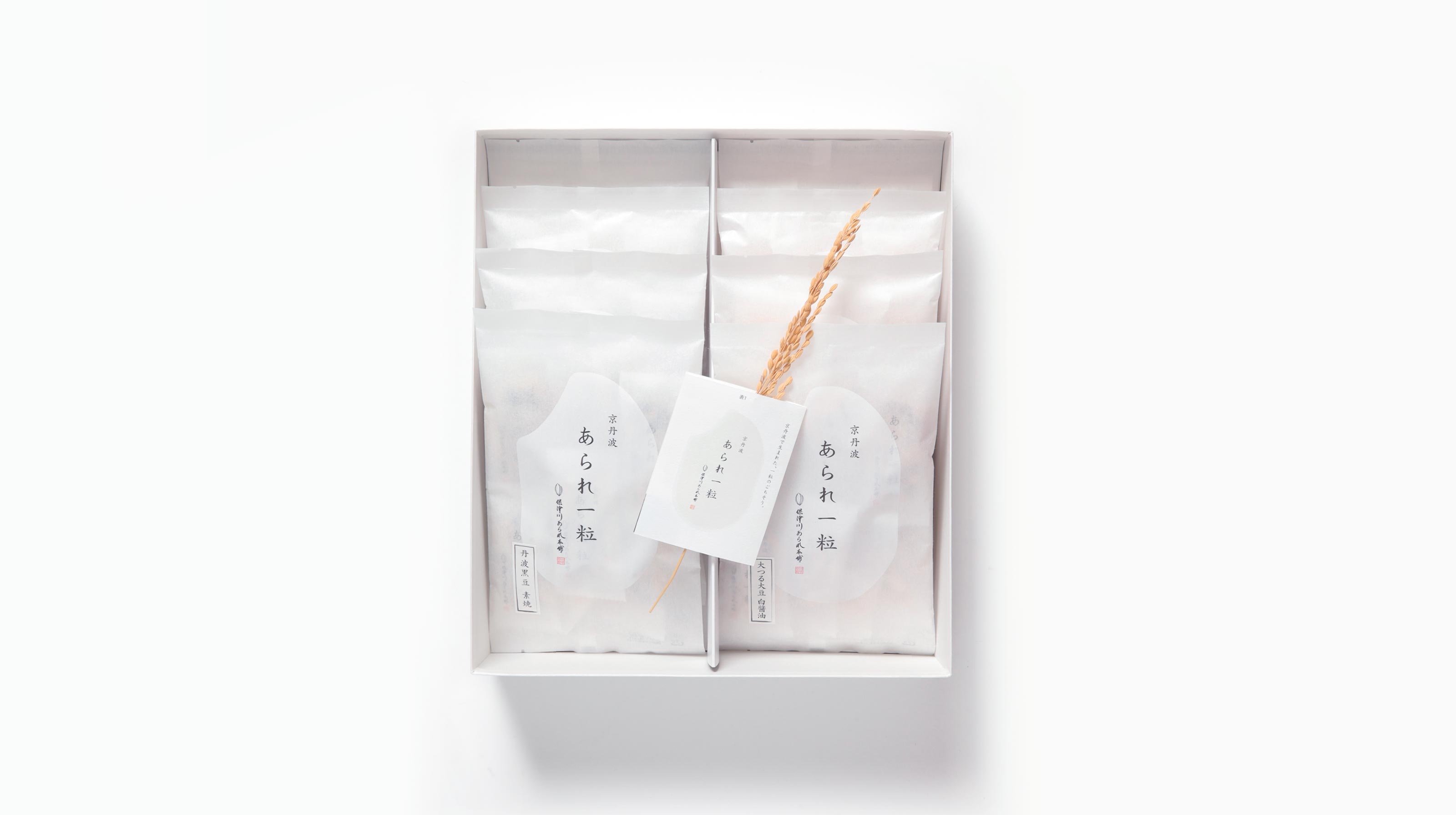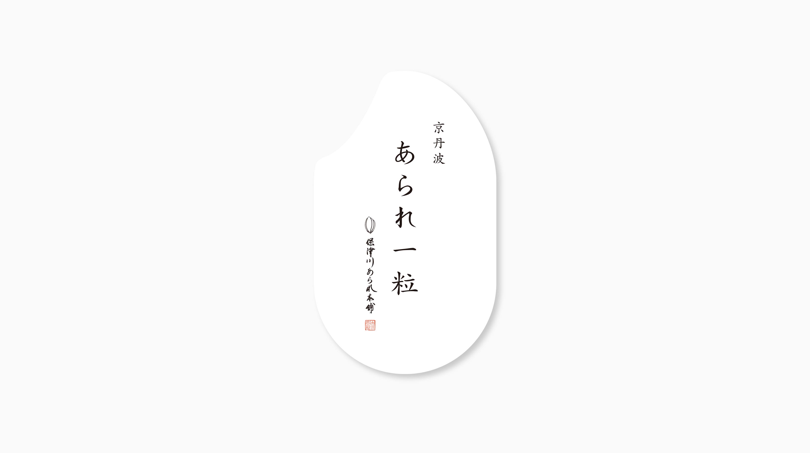 保津川あられ本舗の「あられ一粒」のロゴとパッケージのデザインと商品ビジュアルのアートディレクション。