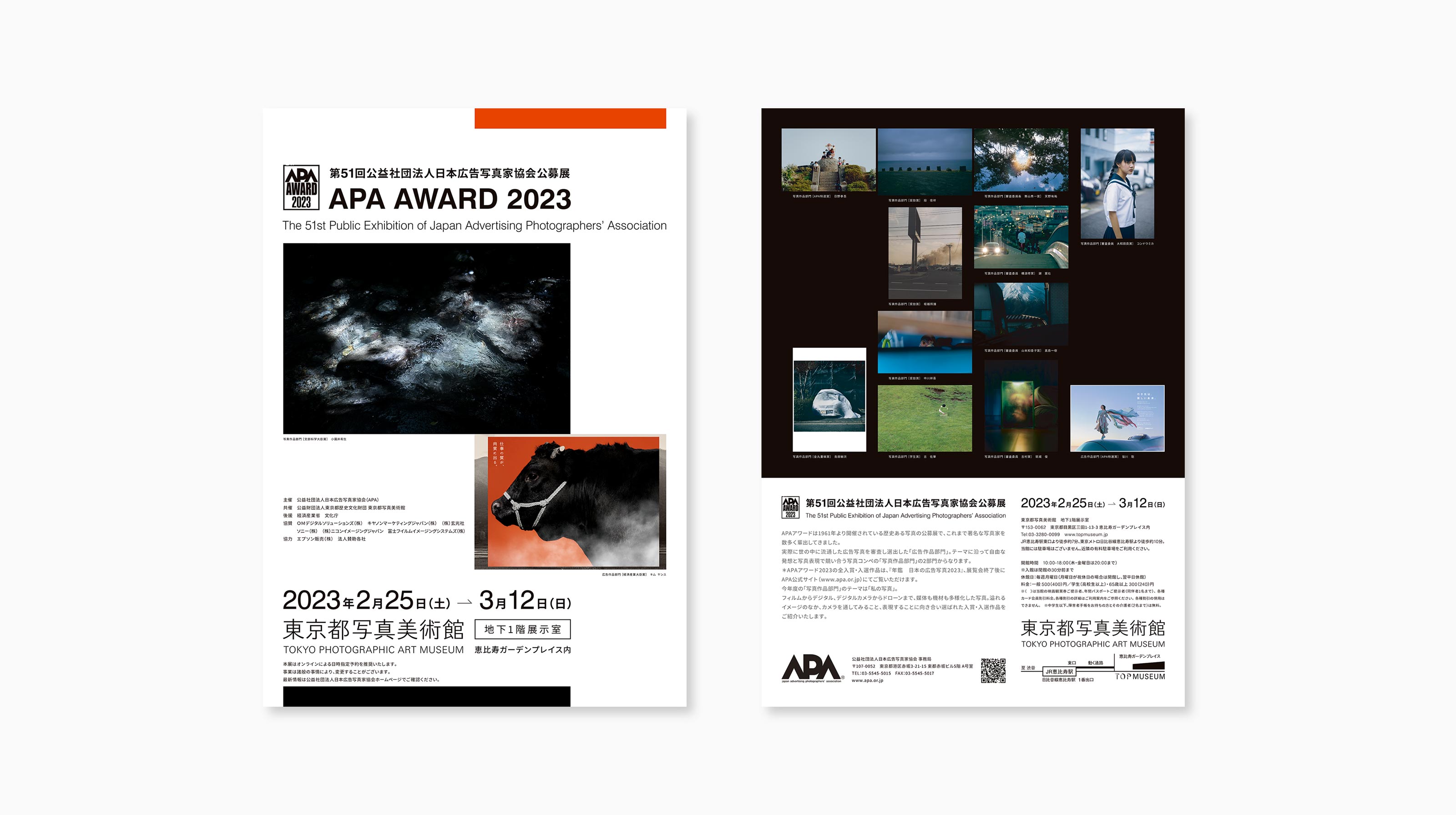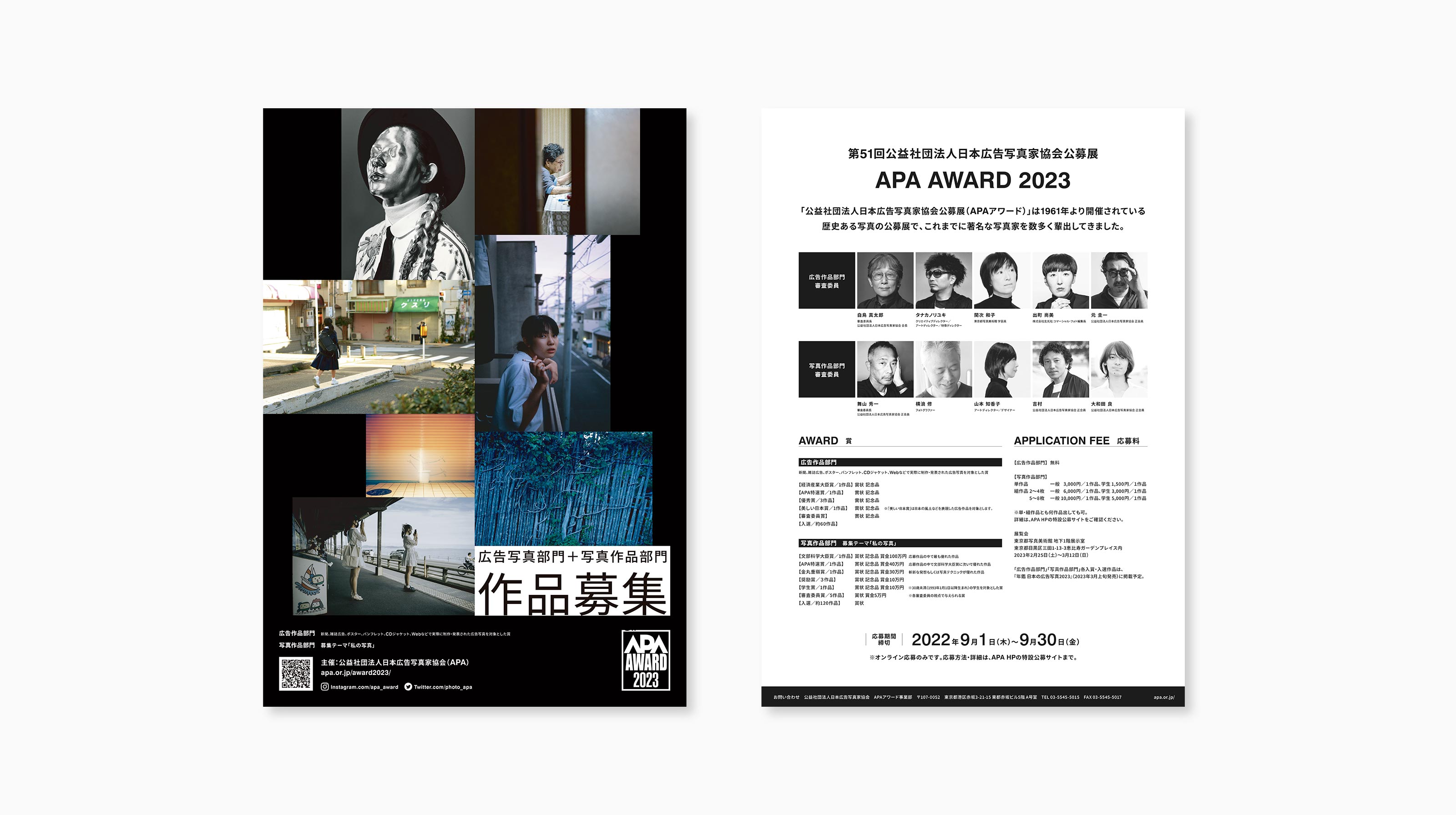 APA AWARD 2023 Client:Advertising Photographers' Association Designer : Atsushi Umezawa APA AWARD 2023の公募用ポスターおよび、アワード展覧会用ポスター・フライヤー・チケットのデザイン。 多種多様な作品が集まる様子をランダムな写真の配置と文字の構成で形にした。 BACK